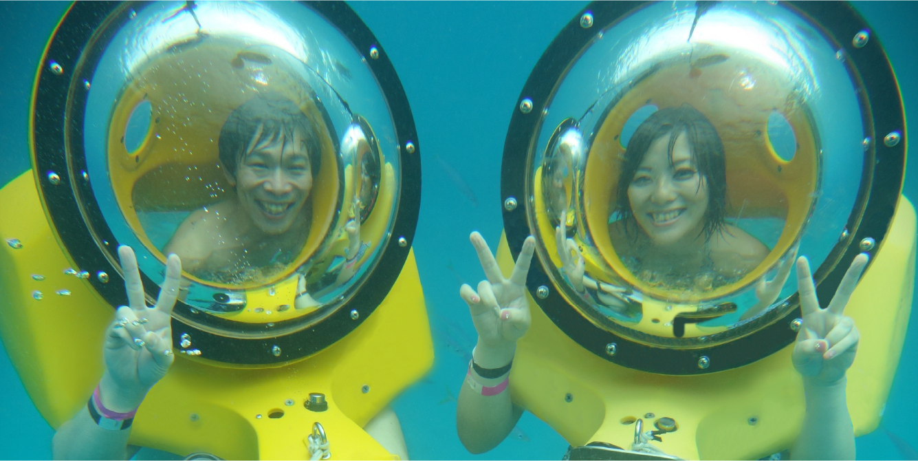 | 注意事項 | 高血圧、糖尿病、肝機能、呼吸器、循環器障害、てんかん、妊娠、中耳炎、飲酒、当日飛行機搭乗の方はサブマリンスクーターとダイビングには参加できません。 |